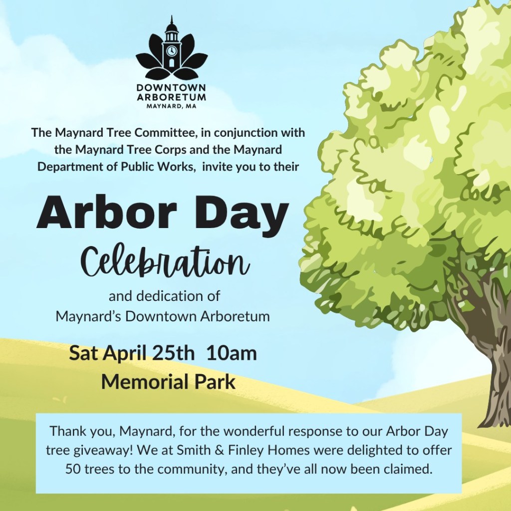 In celebration of the Town of Maynard’s sesquicentennial, The Maynard Tree Corp (www.maynardtrees.com) is hosting two family friendly events on Arbor Day, Saturday, May 1st.