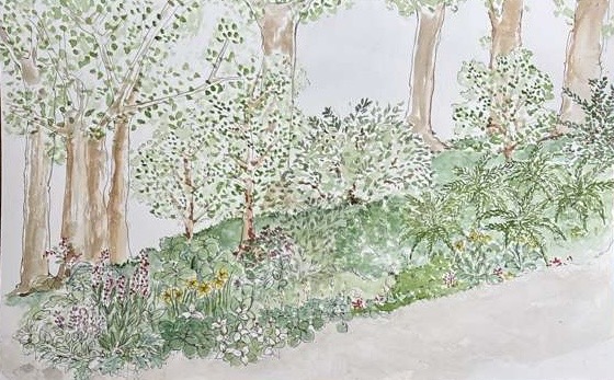 The planned patch of forest is called the ‘Coolidge Cove.’ A cove forest is a natural, botanically-diverse, multi-layered ecosystem that lives and evolves in moist, bowl-shaped valleys or ravines. The majority of the land for this project faces north and east making the local environment akin to a cove. Our vision is to plant densely with a range of native species that, over time, will grow in height as various rates to create a botanically-diverse, multi-layered patch of woods. We anticipate planting over two or three growing seasons to complete our vision.